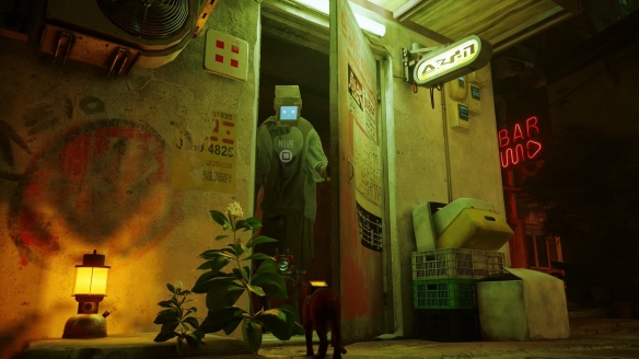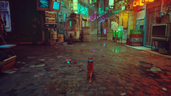 游戲裡的主角可以說就是一隻非常普通的貓咪,更不用提聽懂機器人語言這樣的設定。而劇情中的對話“翻譯”工作大多數都是依靠無人機 B-12來完成。