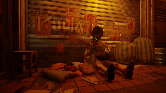 至於「中城」則類似於大部分賽博朋克作品中的都市設計。大街上燈紅酒綠,五光十色,但再鮮亮的色彩也掩蓋不了整座城市的臟亂環境。「中城」的樓宇建築間沒有了類似「貧民窟」的路徑設計,玩家的探索內容也主要是集中在了一些住宅樓、夜店以及其他的商鋪內。