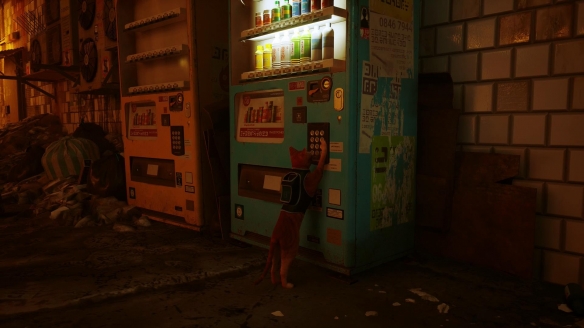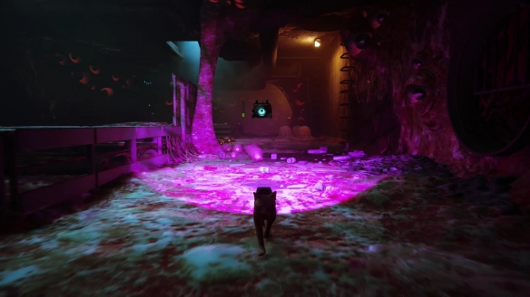 以上的互動選項並不只是單純的讓貓咪賣萌,在冒險過程中同樣能發揮不小的作用。貓叫聲能夠吸引敵人的注意;抓撓可以扯開布料;推翻瓶瓶罐罐夠叫醒熟睡的機器人或者砸開窗戶發現新的通道...在動作的表現以及探索解謎的思路設計上,《迷失》都很符合現實中貓的行為邏輯。