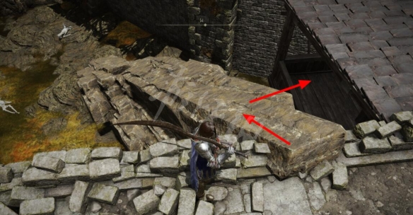 武器豎琴弓位於日蔭城賜福日蔭城(城牆)附近。