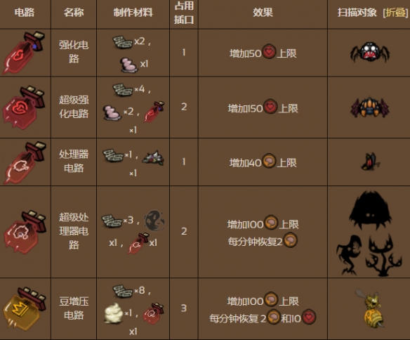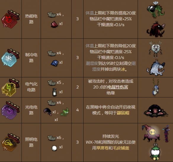 WX-78出生自帶生物分析掃描儀和電路提取器。