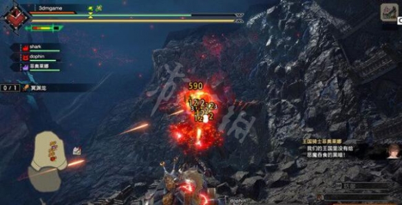 冥淵龍會施展一些AOE火球,進行躲閃後,這些火球漿會散落在地上。每當一個動作周期末尾,冥淵龍會進行吸氣,使得這些火球漿將它反噬,對它造成大量傷害。