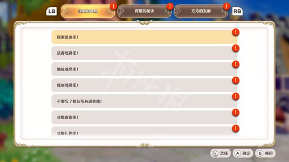 方舟最左邊的三個小人可以查看教程,靈態,遺跡探索錄。
