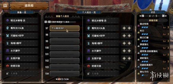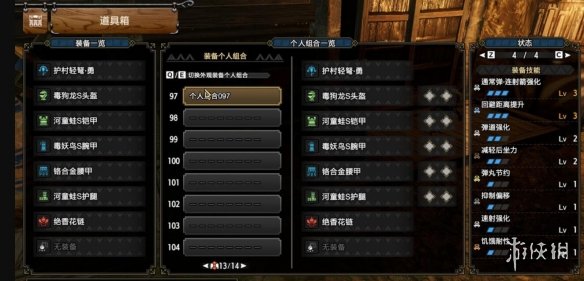 這兩套就是開荒後期的裝備了,也是解禁初期的裝備了,如果不是主輕弩的可以用著這兩套湊合等到完全解禁再直接換初期畢業套,如果是主輕弩的就還得換一下冥淵龍的防具。