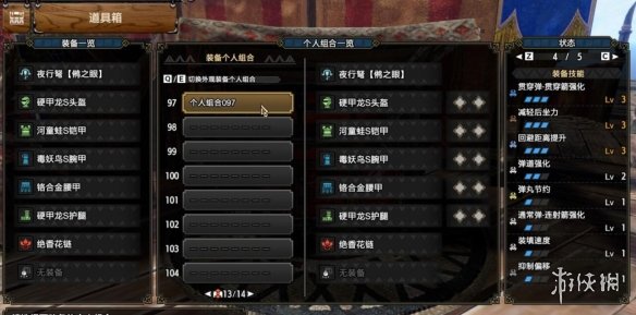 在進入3星之後,防具實際上不需要更換,武器倒是通常彈和貫通彈都升級了,3星前期可以前往城塞高地之後可以升級炎火輕弩,3星後期打完迅龍可以升級迅龍輕弩,實際上這個位置的迅龍腰和將軍鐮蟹腿是可以給貫通用的,只是個人感覺沒必要,需要的可以去做上換上,更換一下珠子可以做到跟現在一樣的技能。