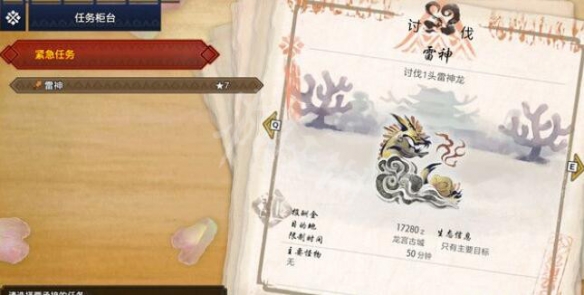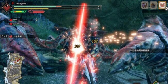 需要打敗一隻大名盾蟹,它的全身都是硬殼,只有正前方的面部是弱點,這個巨獸還是很容易打敗的,只要集火攻擊它的面部即可,切記不要被彈刀。