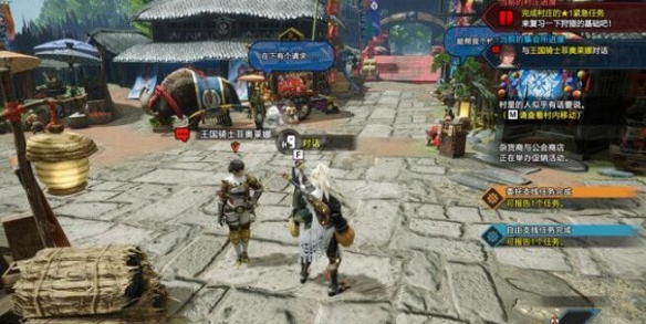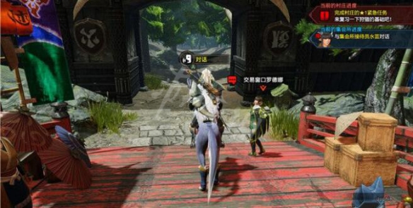 然後找到村莊口紅橋盡頭處的NPC“菲奧萊娜”與她交談,她將告訴你她的王國正在遭受巨獸的襲擊。