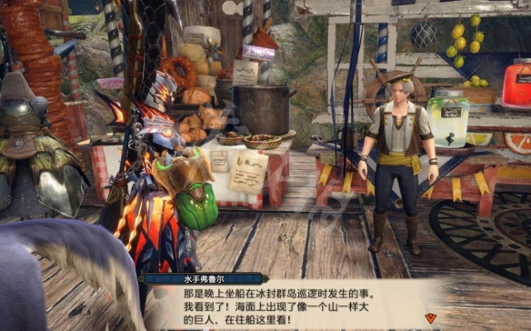 與碼頭上的水手弗魯爾交談可以觸發冰封群島出現巨人的支線任務,他擺脫我們前往冰封群島拍攝一個山一樣大的巨人的照片。