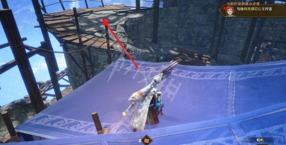 隨後前往帳篷旁邊的城牆殘骸上。