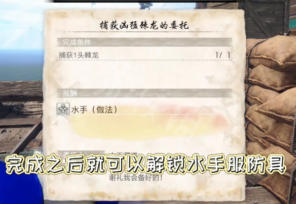 解鎖水手服防具需要做NPC支線任務“捕獲棘龍”