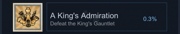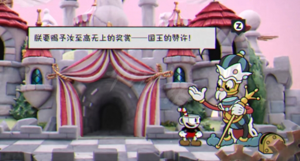 在dlc中,除了主線的boss關卡之外還有以國際象棋為主題的部分關卡。國王的贊許成就需要玩家完成“五指輪戰”的挑戰,分別完成士兵,騎士,主教,車,皇後的關卡,並且要連續贏這五個關卡,中途不能死亡。建議使用聖杯小姐通過,游戲體驗會比較好。完成這五個關卡之後找國王對話就可以解鎖成就了。