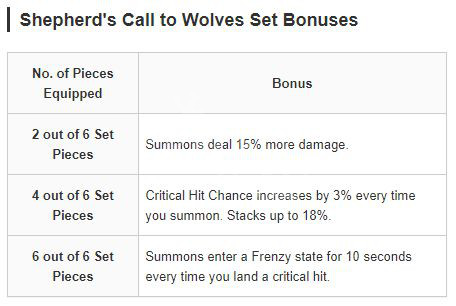最適合本流派的套裝,可以讓召喚物傷害更高。每進行一次召喚就疊加爆擊率,最高至18%。