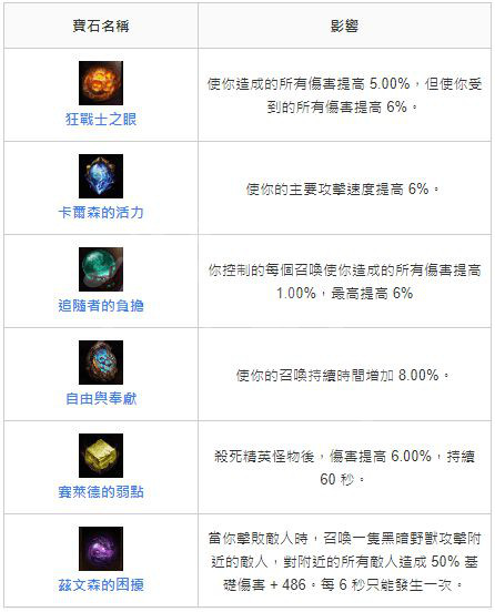 "追隨者的負擔"和"自由與奉獻"尤其重要,使召喚物的持續時間變長、讓你每擁有一隻召喚物傷害都會提高。