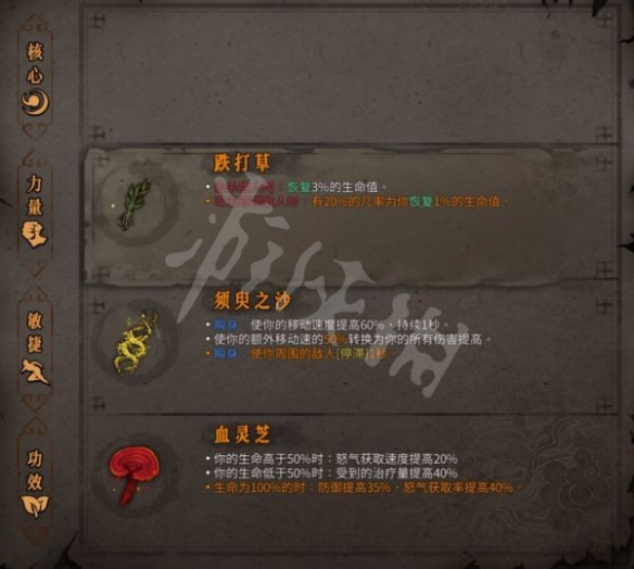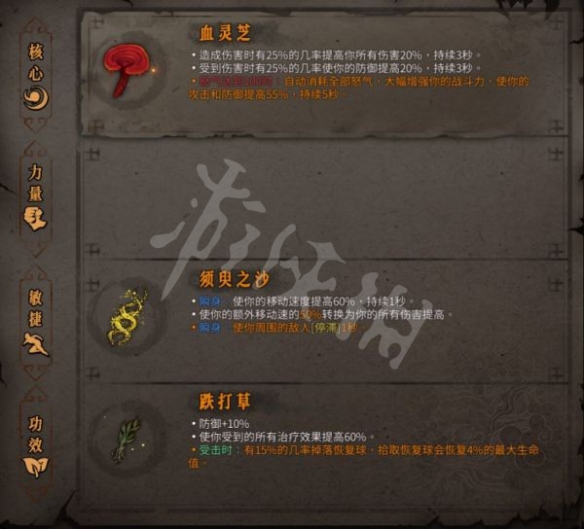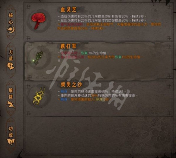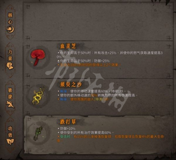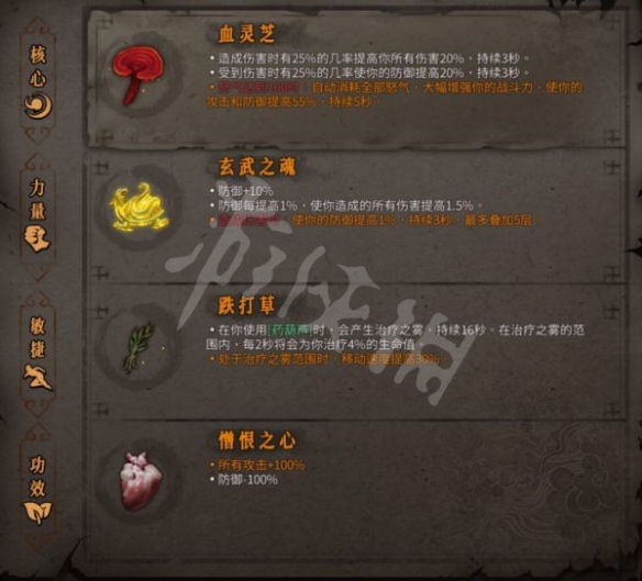 4號位可用 憎恨之心 鋒銳之牙 血靈芝(保證經常滿血) 踏風草(需要金的) 裸衣 青鋼