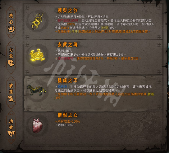 與上邊的配裝差不多,變動的是三號位和四號位,這套配裝武器只要是刷近戰傷害,在與boss對戰的時候特別有效。