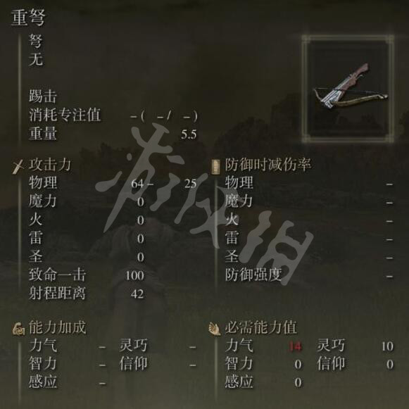 武器重弩為概率掉落武器,可以在寧姆格福關卡前方附近獲得。