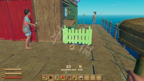 運行木筏求生游戲,使用4個厚木板、6個乾燥的磚塊、4個碎片、6個釘子製造熔爐,完成後安裝好。