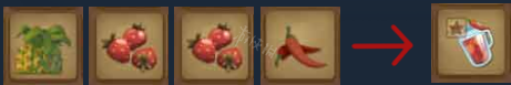 1-紅漿果,1-草莓,1-西瓜,1-椰子。