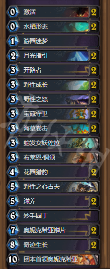 315娜迦可以去掉一張,帶第二張園丁讓卡組的過牌和跳費更靈活, 在對戰不能疊甲職業的時候,開路者也可以用來過牌或者跳費。