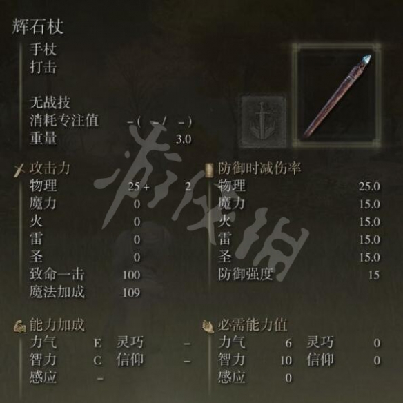 消滅廢墟中使用魔法的貴族有概率掉落輝石杖,可以旁邊的賜福通往城寨的道路刷新怪物。