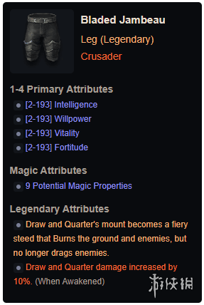 刀刃脛甲:核心傳奇之一,騎馬賓士會有火焰走步,強化AOE清怪能力。