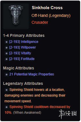 天坑十字架:讓祝福之盾變為在指定地區旋轉,可以使擊中目標的移動速度下降,讓敵人更容易待在你的地板持續傷害技內。