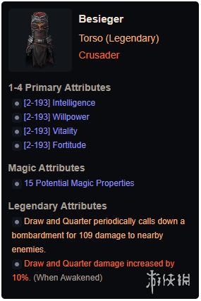 圍攻者護胸核心傳奇之一,騎馬的時旁邊有火炮轟炸支援,強化AOE傷害。