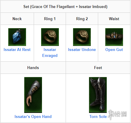 使用四件"伊薩塔的灌魔"和兩件"鞭笞者的恩典"