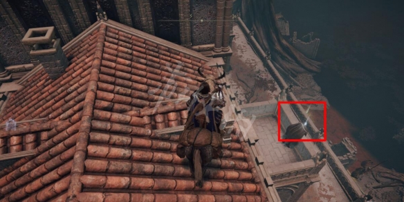 來到黃金種子樹旁邊,通過下方的樹枝到達前方屋頂上。