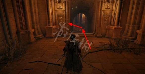 從賜福出發向城牆內部前進,在前方樹枝處左轉。