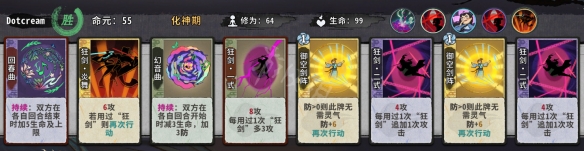 通過壓縮狂劍牌的數量,來提高狂劍牌的質量,3級被動+狂2+御空劍陣+回血曲保命。