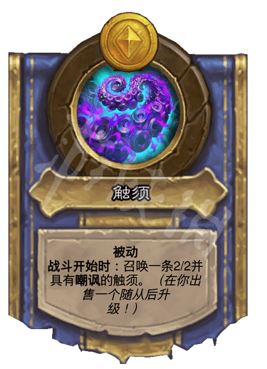 被動:戰鬥開始時:召喚一條 / 並具有嘲諷的觸鬚。(在你出售一個隨從後升級!)