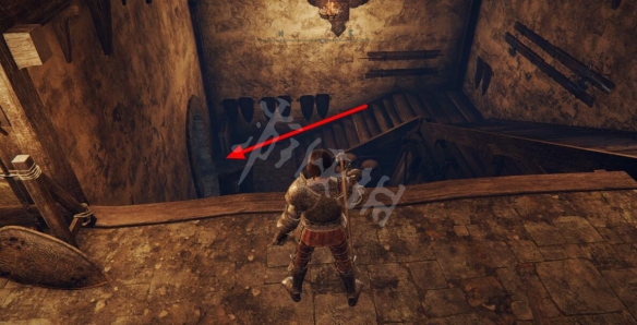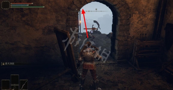 在前方右轉通過小門進入城堡中。