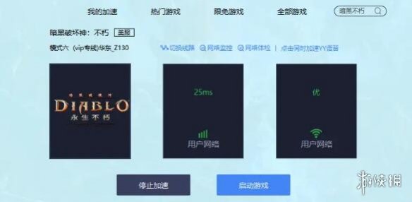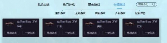 第一步:先注冊戰網賬號,因為是國際服,所以需要加速工具的支持,玩家可以在加速器中搜索“暗黑不朽”,找到暗黑不朽美服並加速;