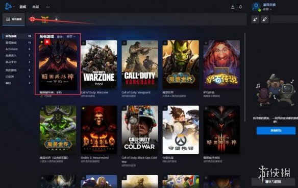 登錄成功後,點擊左上角的游戲,然後找到暗黑不朽游戲點擊進入;