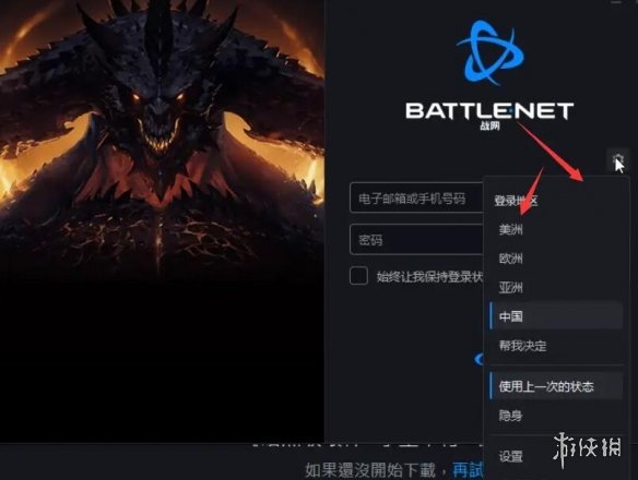第五步:下載完成後,直接按照提示安裝客戶端並啟動,在登陸戰網客戶端的時候可以點擊齒輪按鈕,選擇自己想要登陸的地區;
