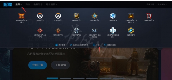 在暗黑不朽官網點擊左上角戰網圖標,進入戰網國際服,左上角遊戲中找到下載按鈕。
