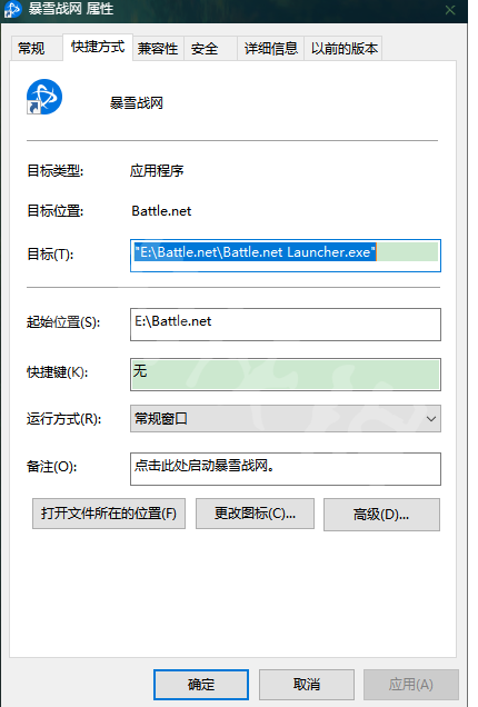 第三步,接著系統就會彈出暴雪戰網的屬性窗口,此時在窗口中,找到【目標】選項,然後後面有一串的安裝地址,此時我們在這個安裝地址的最後面,加上一個【--setregion=US】,最前面有個空格,然後點擊【確定】按鈕。