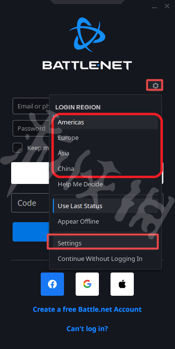 第四步,然後我們再次打開暴雪戰網軟體,然後點擊小齒輪圖標,此時你就會發現,戰網可以選擇中國以及其它伺服器了。當然了,更改後的軟體還有可能變成英文,此時我們只需要選擇【Settings】選項,然後點擊進入。