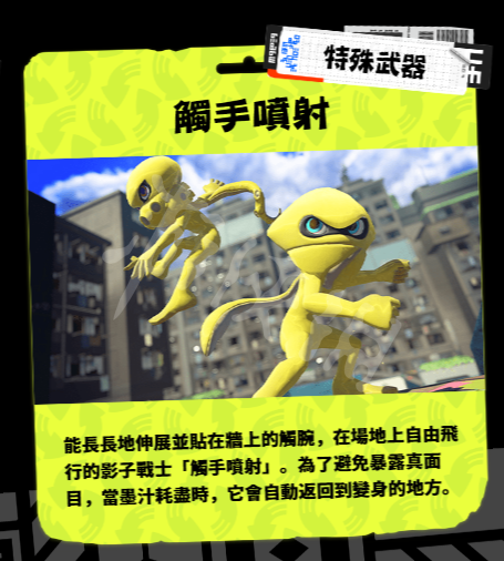 能長長地伸展並貼在精上的觸腕,在場地上自由飛行的影子戰士“觸手噴射”。