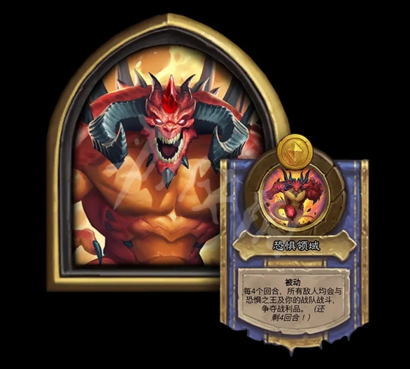恐懼領域:被動。每4個回合,所有敵人均會與恐懼之王及你的戰隊戰斗,爭奪戰利品。