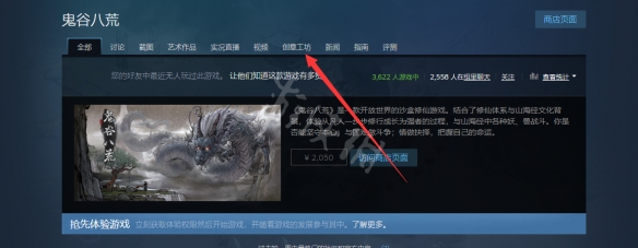 1、在Steam遊戲庫中打開鬼谷八荒頁面,點擊【開始遊戲】按鍵下的【社區中心】頁面。