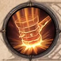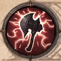 1級解鎖,傷害技能,冷卻時間12秒,召喚一把巨大的錘子,對你面前的敵人造成傷害並震動大地,在2秒內造成額外傷害。