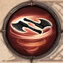 8級解鎖,傷害技能,冷卻0.5秒,化作一道鋼鐵旋風,持續對附近所有敵人造成傷害,同時降低70%的速度移動。使用旋風斬會慢慢消耗你的能量,在旋風斬未使用時會恢復能量。