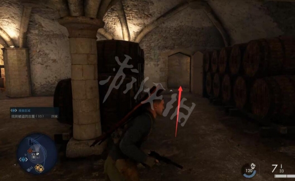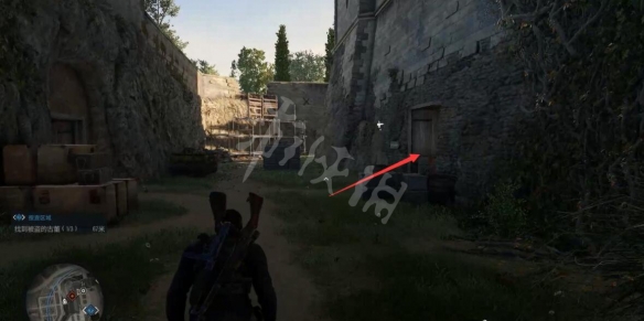 然後按下圖箭頭路線,從城堡外的河道進入地窖,那裡是軍械庫,有工作台、炸藥包以及很多補給。