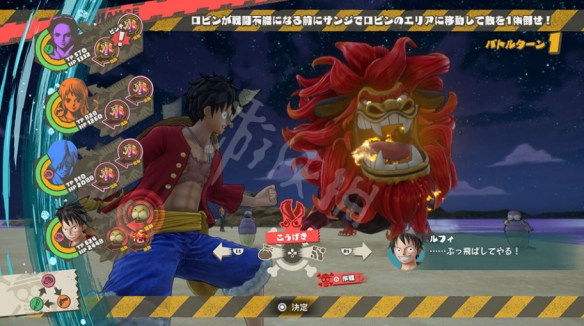 游戲採用回合制戰斗,各屬性相互克制。通過讓草帽一夥的各成員發揮積極作用來贏得勝利,盡可能貼近海賊王原作。