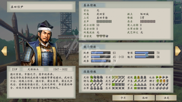▲新增武將的五維數據、生平都是基於信野的戰國立志傳和大志PK版,數據會有一定的變化,但幅度不大。