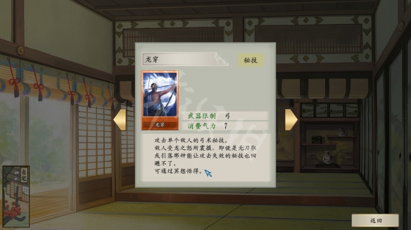 技能方面,有些新的秘技需要對應的兩項專精達到高等級後才能習得,如弓技“鳴弦”要求的就是弓術和禮法。
