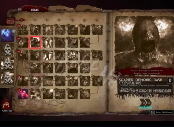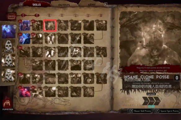 鬼玩人游戲傀儡師有哪些技能?傀儡師是游戲中鬼陣營的一個角色,許多小夥伴不知道傀儡師有哪些技能,下面小編就帶來鬼玩人游戲傀儡師技能樹介紹,一起來看看吧。