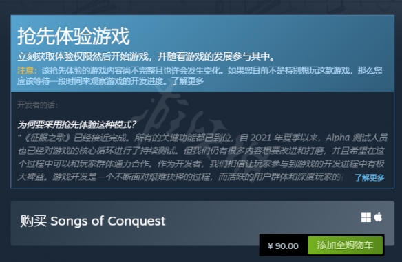 遊戲目前在Steam上處於搶先體驗階段,國區售價90元,感興趣的玩家可以入手體驗下。